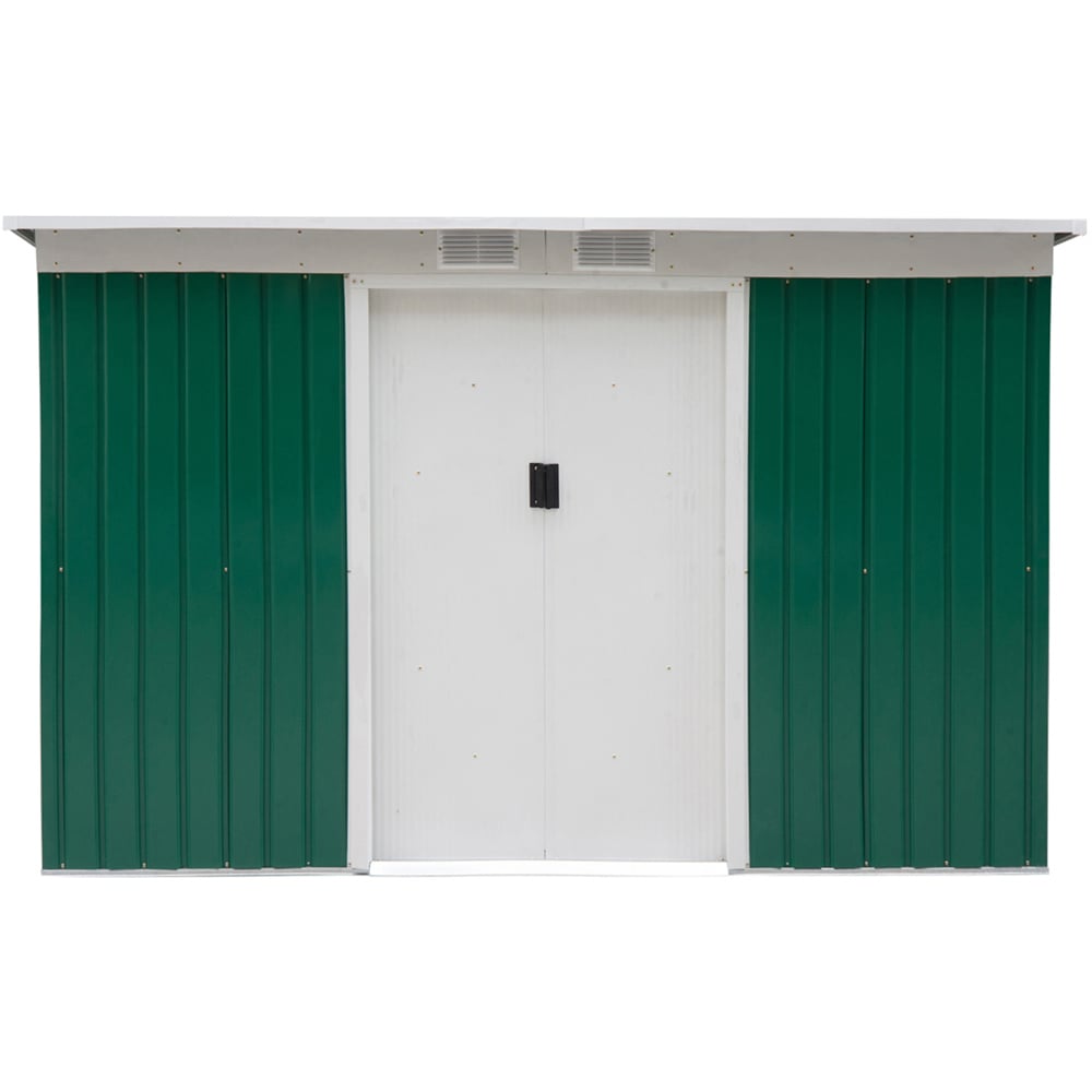 The Outsunny 9ft x 4.25ft Metal Storage Shed is the perfect solution for keeping your garden equipment safe and secure. Its galvanized steel construction provides robust, corrosion-resistant protection, ensuring longevity. Rainwater is effectively channelled away thanks to the cleverly designed sloped roof. Access is a breeze with the double sliding doors, and two ventilation windows guarantee a well-ventilated interior, keeping your tools in optimal condition.