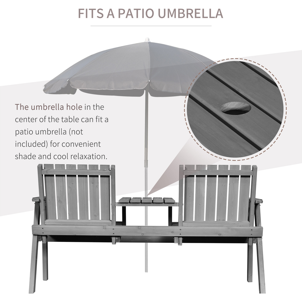 Make the most out of your gardens this summer with the Outsunny Antique Grey Wooden Companion Seat. Made using fir wood, this companion seat is not just durable but weather-resistant and supportive for suitable outdoor use. The middle table gives a handy resting spot, with a centre hole to hold a parasol - keeping you protected from the sun. For comfort, the slanted back and armrests complete this piece of furniture to use without discomfort for longer periods. Protect your garden furniture with our durable and waterproof covers. Explore our wide range of heavy-duty Garden Furniture covers to find the perfect fit for your needs.