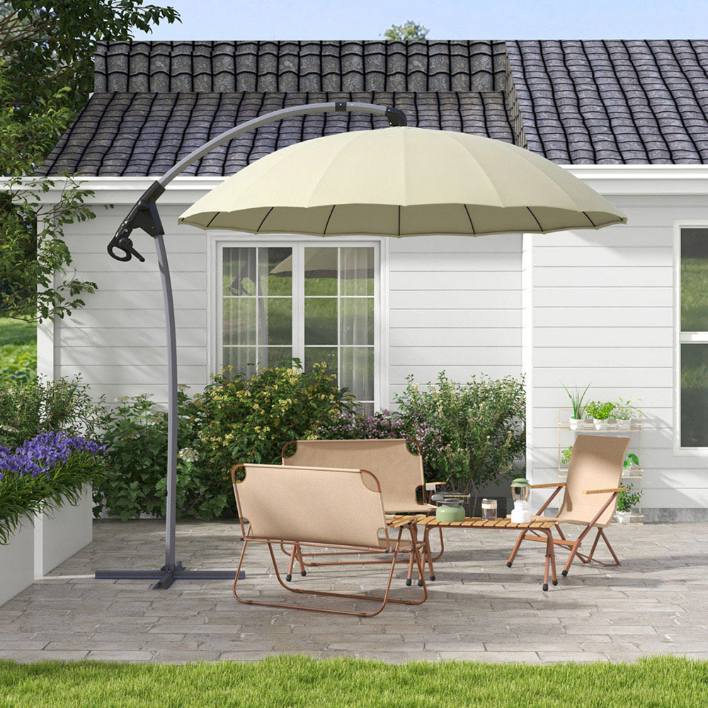 Outsunny Beige Cantilever Parasol with Cross Base 2.7m