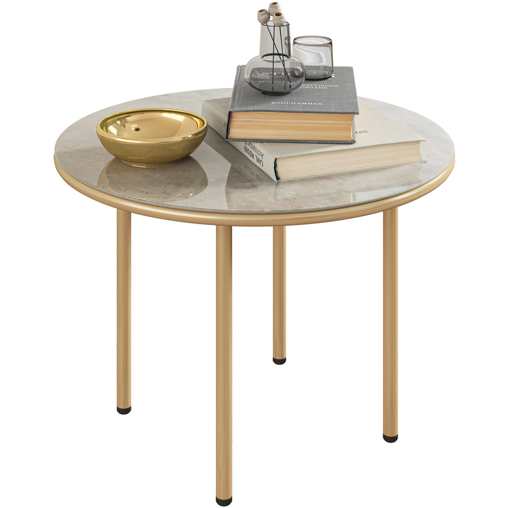 Outsunny Beige Faux Marble Glass Top Garden Round Coffee Table