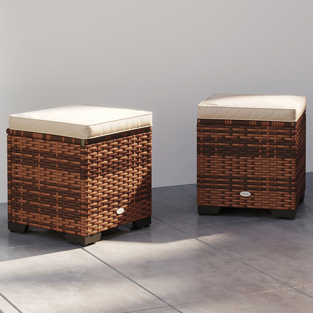 Outsunny Beige Rattan Ottoman Footstool Set of 2