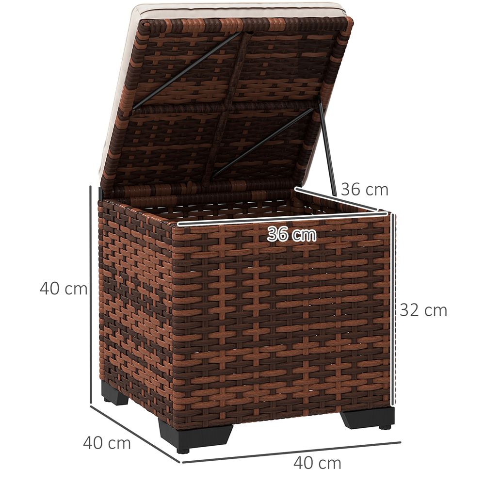 Introducing Outsunny's rattan garden stool, where elegance meets practicality. Beneath the lift-off lid lies ample storage, perfect for stowing away everything from your favourite books to essential gardening equipment. Sink into luxurious comfort with the thick, cushioned seat, complete with easily removable, zip-off covers for effortless cleaning. Designed with a robust steel frame to withstand the elements, this versatile stool doubles beautifully as a footstool or offers additional seating whenever you need it.
