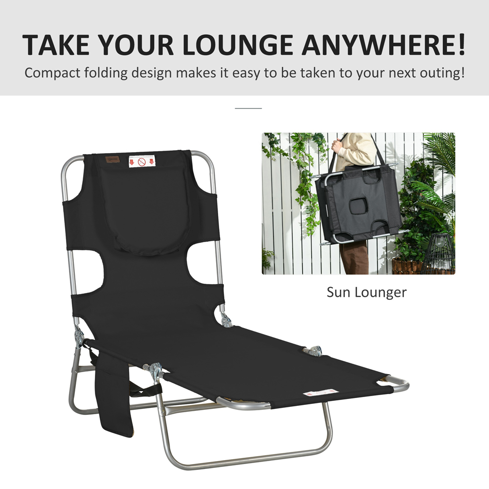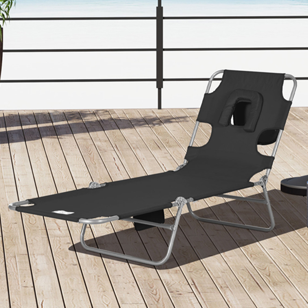 Outsunny Black 5 Level Adjustable Folding Sun Lounger with Reading Hole