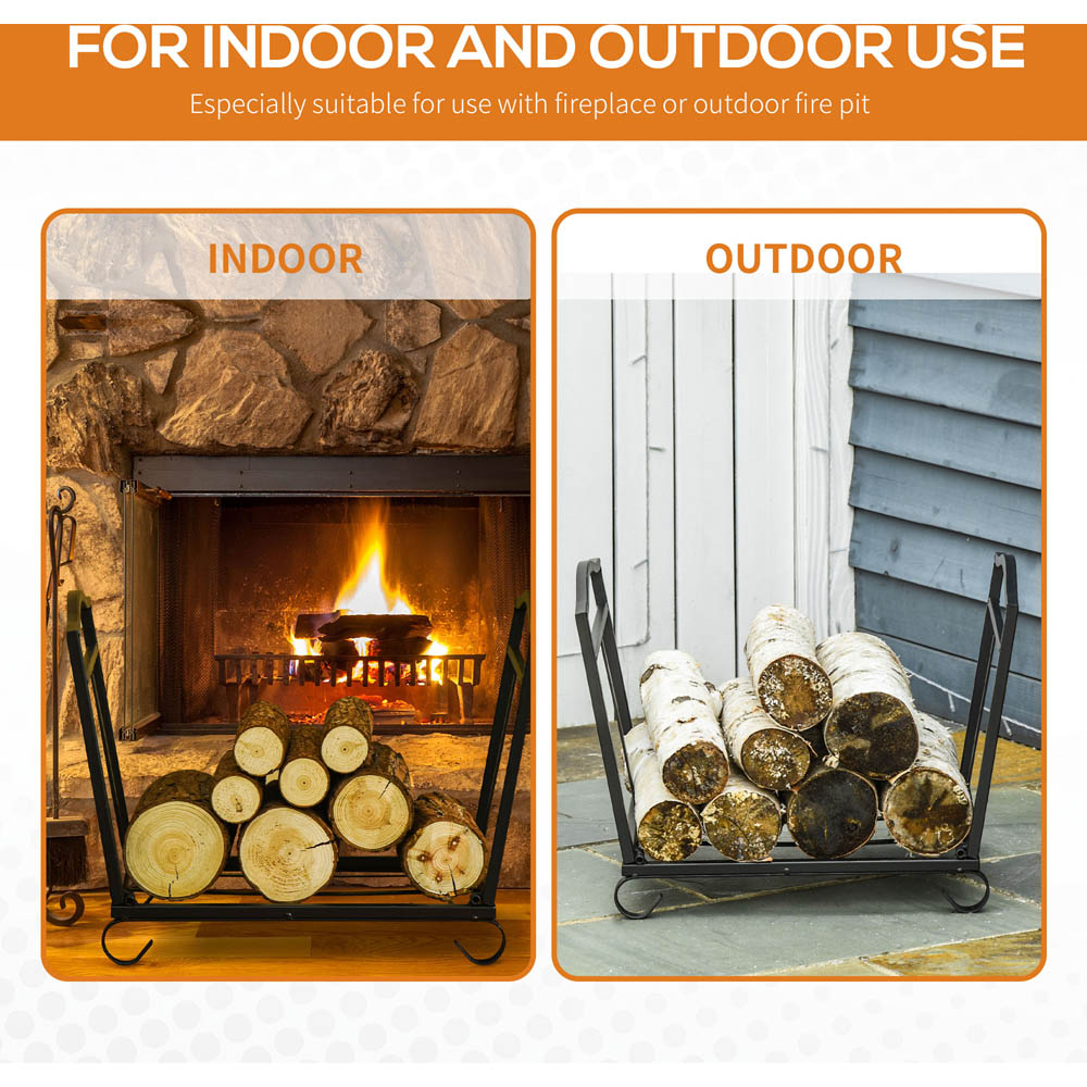 Outsunny Black Firewood Log Holder Wood Storage Rack