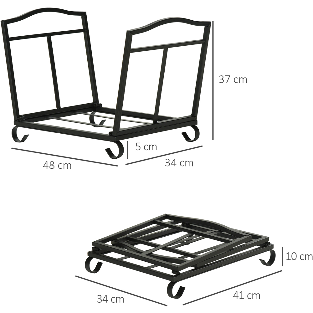Keep your firewood organised and ready for use with this Outsunny log holder. Constructed from robust powder-coated metal, its open design provides ample storage for up to 50kg of logs. The cleverly designed, widely slatted bottom shelf prevents waterlogging, while four scroll feet ensure good airflow, maximising burning efficiency. Its foldable design allows for easy storage when not in in use. Finished with high sides and a simple, clean aesthetic, this rack offers a practical solution for firewood storage.