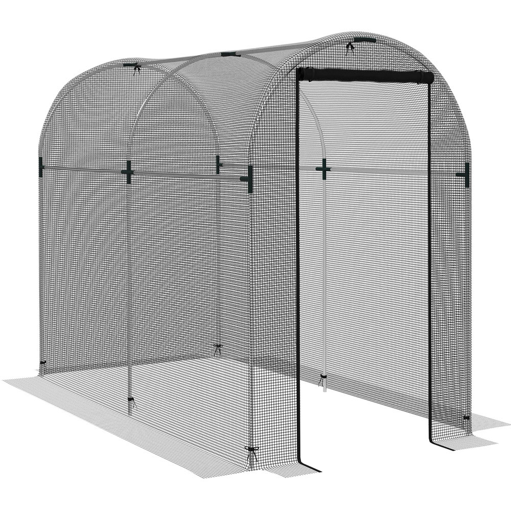 This robust 6ft x 7.8ft plant tent provides the perfect environment for nurturing your plants, flowers, and vegetables, even in limited spaces. Its galvanised steel frame offers exceptional strength and durability, while the tear-resistant mesh cover creates a safe and secure haven for your produce. The compact design allows for easy placement in various locations, and the zipped door, which conveniently rolls up and secures, ensures effortless access. For added stability, the base frame can be anchored into the ground. This plant tent offers a practical and protective solution for cultivating a thriving garden.