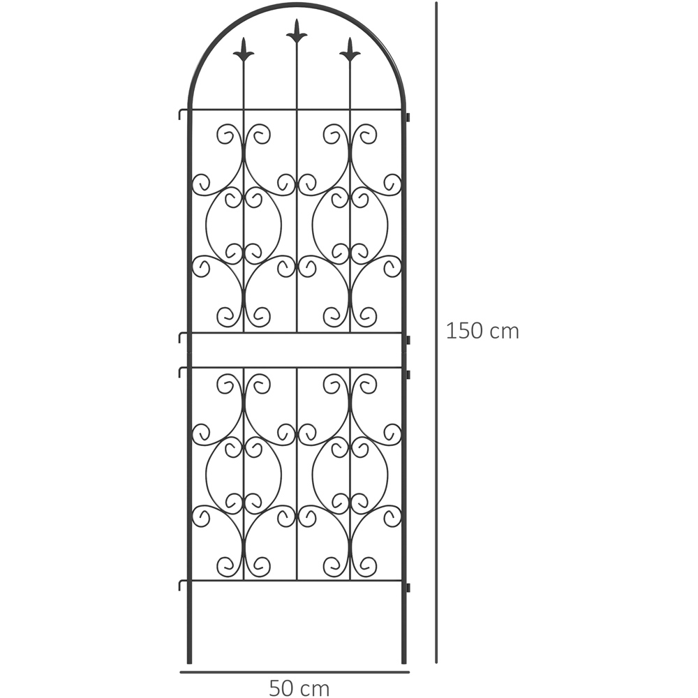 Enhance your outdoor space with the Outsunny metal trellis, a delightful addition to any garden. These two trellises, featuring intricate scrollwork motifs, provide ample room for climbing plants whilst acting as attractive privacy screens. Constructed from durable, powder-coated metal, these weather-resistant supports are designed for longevity and effortless installation into the ground. Ideal for gardeners seeking to enhance their gardens with a touch of elegance and practical plant support.