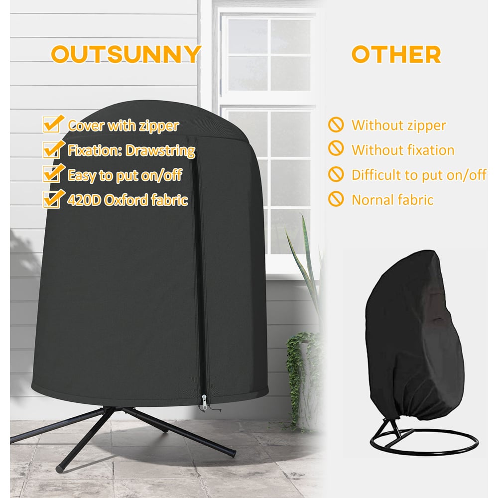 Outsunny Black Garden Waterproof Hanging Egg Chair Cover 190 x 128cm