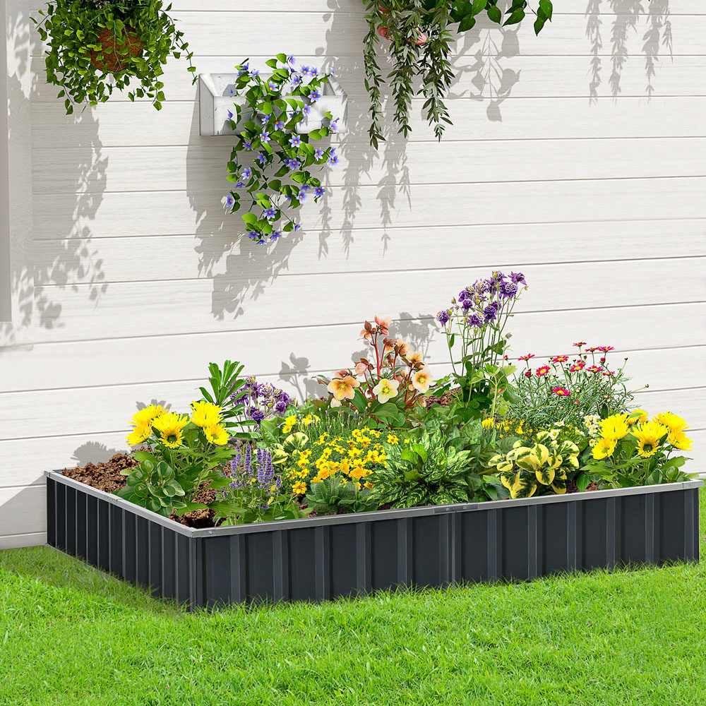 This raised garden bed planter offers a stylish and practical solution for cultivating your favourite plants, vegetables, and herbs. Its robust black metal construction ensures longevity and resistance to the elements, making it a durable addition to any garden or patio. The compact design is ideal for smaller spaces, perfect for apartments, patios, or decks, allowing you to grow your own produce even with limited space. A unique snap-fastening system enables tool-free assembly and customisation to suit your specific needs, offering a simple and convenient setup. This planter effectively keeps weeds at bay, prevents soil compaction, and promotes excellent drainage, creating the optimal environment for healthy plant growth.