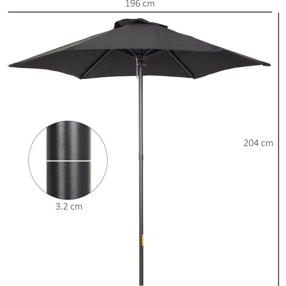 Introduce elegance to your garden and outdoor spaces with the Outsunny Black 6 Rib Push Open Garden Parasol. The sturdy aluminium frame provides a solid foundation, featuring six ribs for added stability in windy conditions. Effortlessly open the sun parasol with the push-open mechanism, ensuring quick and convenient shade. Closing it is just as simple. The large canopy offers ample protection from direct sunlight and light rain. The aluminium pole is powder coated for durability, ensuring the patio parasol stands strong and upright. Ideal for gardens, balconies, patios, and other outdoor areas without cover. The top vent allows air to flow through, preventing the garden umbrella from inverting. Looking for a way to keep your parasol secure and protected and enjoy some shade? Check out our selection of parasol bases, designed to keep your parasol in place while you relax and parasol cover to keep them protected.