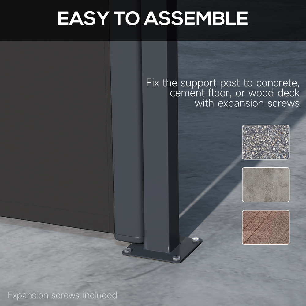 Prevent sun and wind from disturbing your outdoor time with the Outsunny Black Retractable Side Awning. Bring this retractable garden screen into your relaxation space and extend your time out in the garden. With UV30+, this PU-coated polyester screen keeps you protected, providing shade without fading. The metal base frame ensures it attaches securely to the chosen space and holds it strongly in one place. With its retractable design, the screen is flexible and easy to open and retract into position. Simply pull out the canopy smoothly and fix it in place with the clip lock handle. Size: 4 x 1.6m.