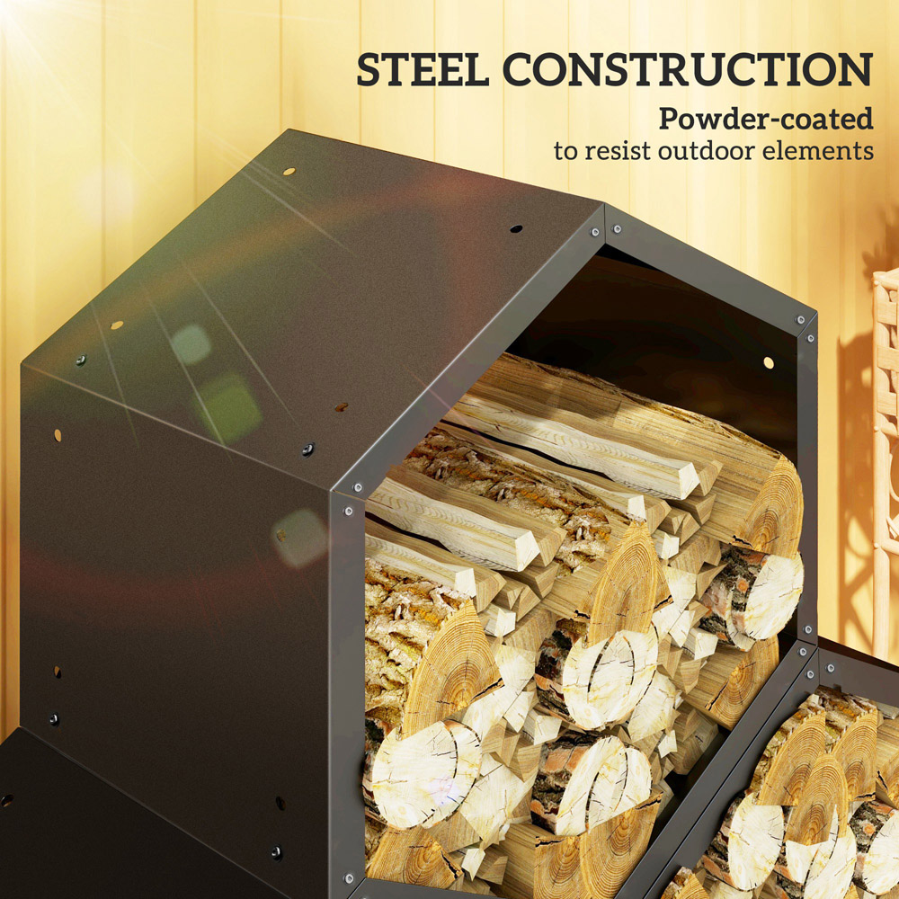Outsunny Black Firewood Log Holder Wood Storage Rack