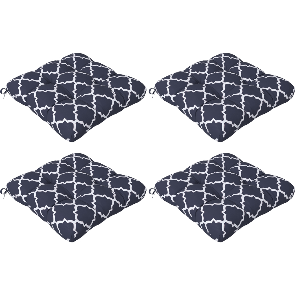 Elevate your outdoor seating with the Outsunny Blue Seat Cushion Replacement Set of 4. This set includes four matching chair cushions, each filled with thick foam padding for optimal comfort and relaxation. The gorgeous tufted design helps the cushions retain shape at all times. The fabric covers are soft, smooth, and fade, light, and stain resistant. Suitable for both indoor and outdoor use, these cushions also have flame-retardant covers.