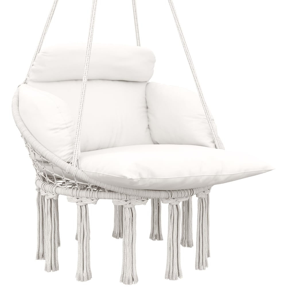Sink into serenity with the Outsunny hanging hammock chair, a sanctuary of blissful comfort featuring a generously sized, plush cushion. The 320 gsm polyester cotton fabric provides a breathable and exceptionally soft feel. Expertly crafted with a robust steel frame and intricate weaving, this hanging swing chair offers a secure and calming escape. Thanks to the included hardware, hanging this hammock swing chair is a breeze, making it the perfect addition to your indoor or outdoor relaxation space.