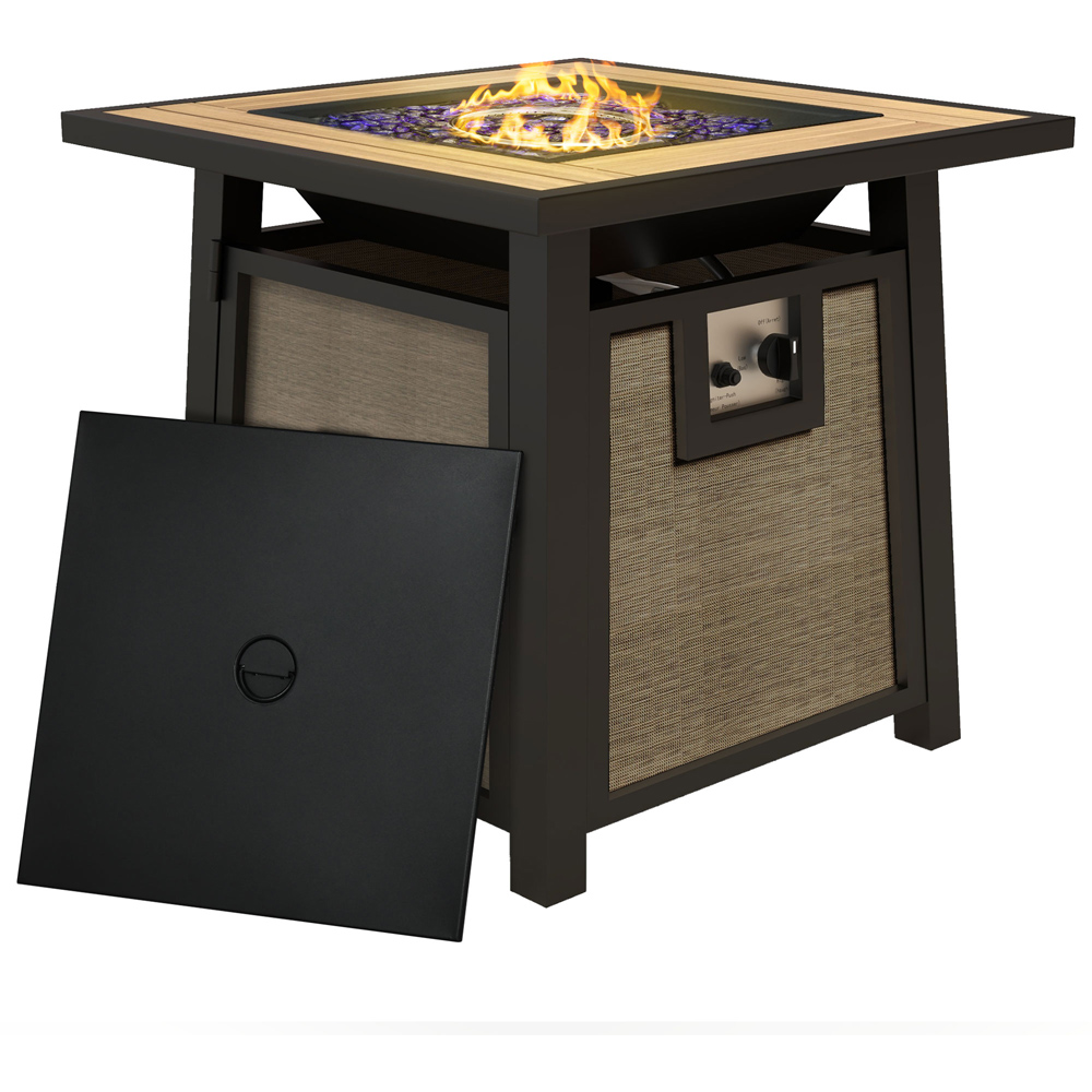 Transform your outdoor area into a welcoming retreat with the Outsunny Brown Gas Fire Pit Table. Simple to ignite with its pulse ignition system, this 40000 BTU fire pit ensures a clean-burning flame with minimal ash. The spacious 71cm tabletop provides ample dining space for up to four people, while the bottom holding area accommodates a standard 5kg gas tank. Supplied with glass beads, this fire pit not only retains warmth but also adds a touch of elegance to your patio. A cover is also included. Note: Requires batteries (not included).
