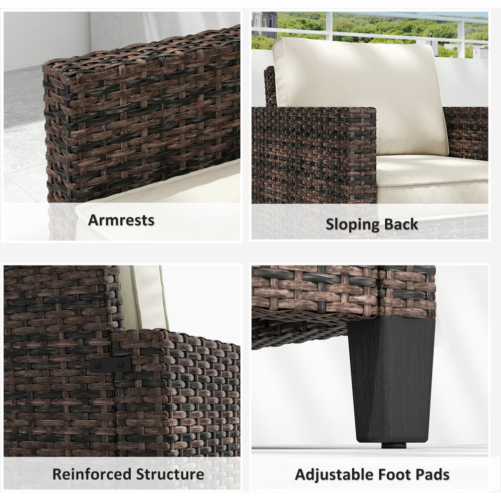 Outsunny Brown Rattan Garden Armchair with Cushions