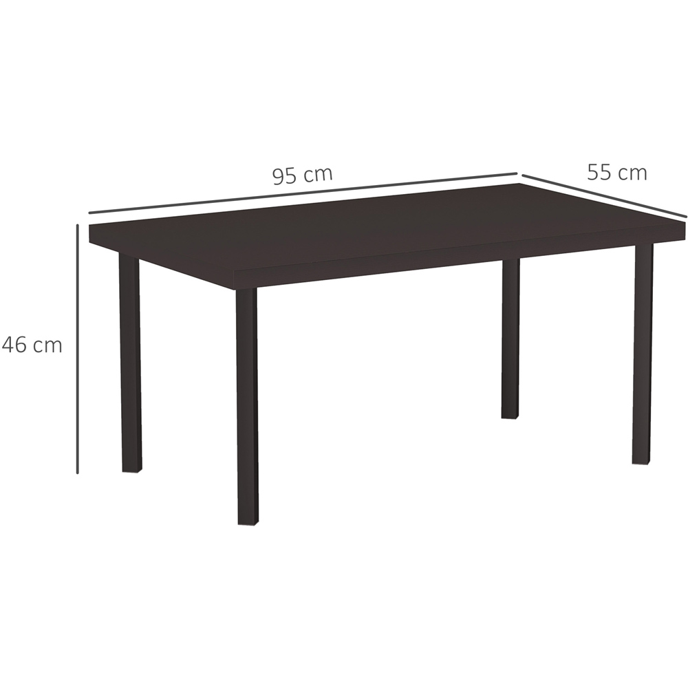 Enhance your outdoor living space with the Outsunny Outdoor Table, a seamless blend of practicality and natural aesthetics. The generous 95 x 55 cm wood grain effect tabletop brings a touch of nature to your patio or garden. Crafted with a weather-resistant, powder-coated metal frame for enduring appeal, it also features foot pads to protect your decking or patio. A stylish enhancement, perfect for endless summer evenings.