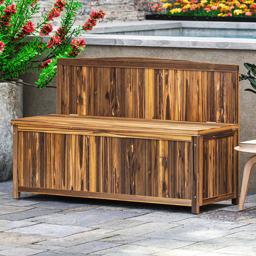 Enhance your garden with this Outsunny storage bench, the perfect blend of seating and practical storage. Crafted from fir wood with a protective varnish for lasting outdoor use, this bench offers comfortable seating for two, with a robust 250kg weight capacity. Its ergonomic design ensures relaxed comfort, while the integrated storage keeps your garden essentials neatly tucked away. A must-have addition for any garden.
