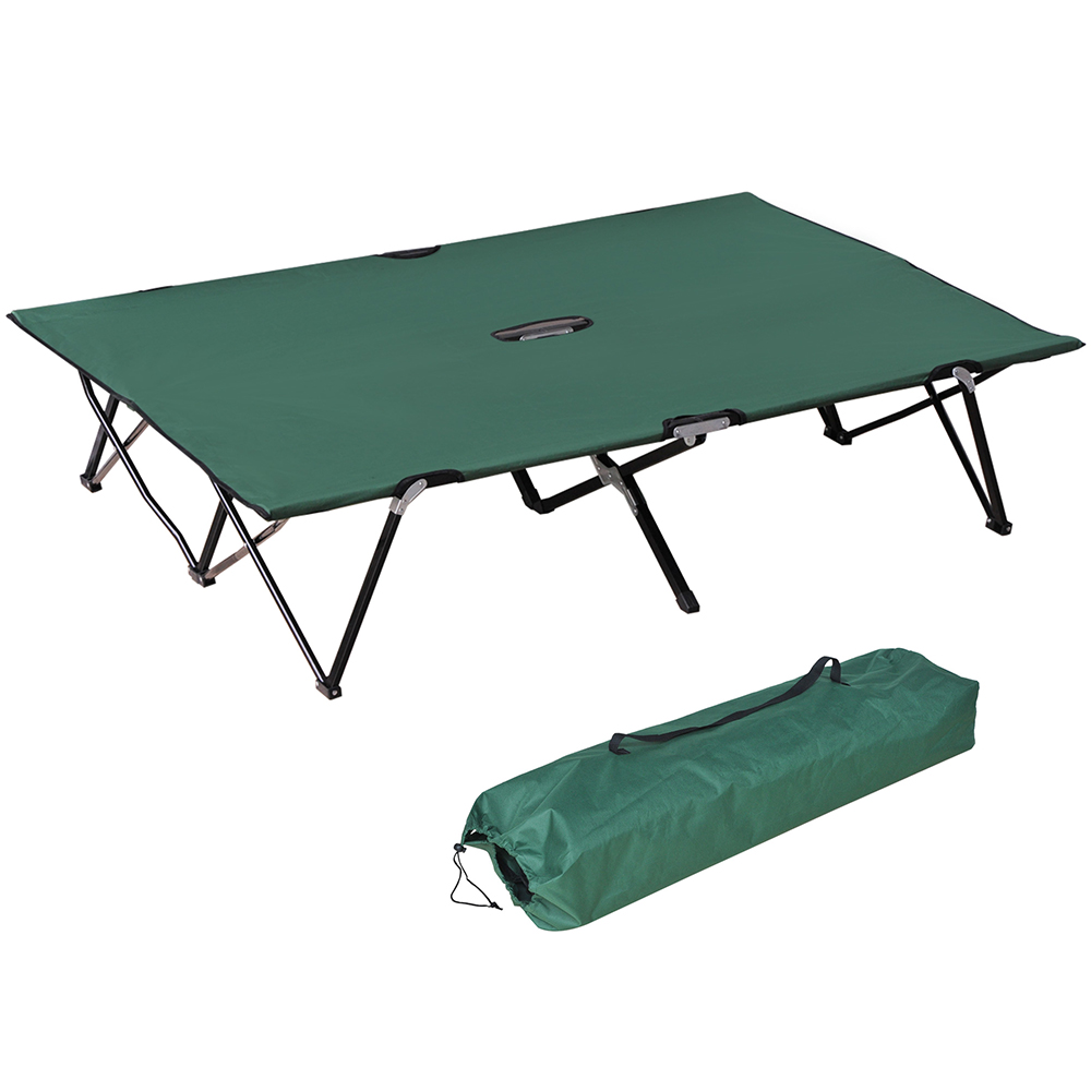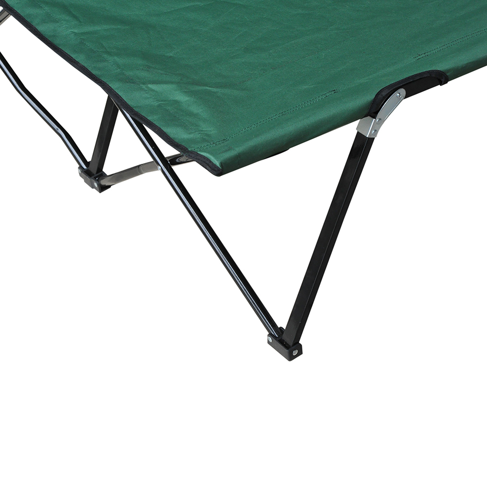This Outsunny camping travel cot is a great addition for anyone who likes to go camping and see the outdoors. The folding system helps to make the unit compact and easy to carry. It is made from a metal frame with Oxford fabrics which can hold up to 136kg. The raised height and length of 193cm will fit most people for comfortable seating or sleeping. The cot comes ready to use and will be ideal for travelling. Made for two people to rest and sleep comfortably throughout the night, this folding camp bed supports up to 136kg. Providing more than 40cm height of the ground, this double camp bed lets air flow freely on all sides to keep you comfortable while you sleep. Made with 600D oxford fabric, this camping bed makes for a cot that can withstand wear and tear.