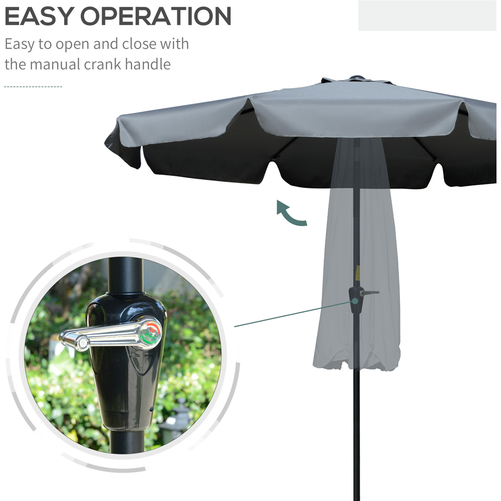 Outsunny Charcoal Grey Crank and Tilt Parasol with Ruffles 2.66m