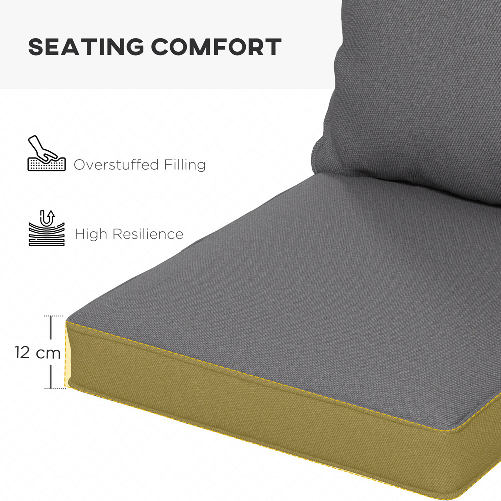 Enhance your outdoor seating experience with this Outsunny Charcoal Grey Back and Seat Replacement Cushion Set. The cushions have a thick filling for maximum comfort and relaxation. Perfect for adding comfort and style to your garden, the outdoor seat set is suitable for refreshing your home instantly. Easy to maintain, the fabric is resistant to light stains and water while also being machine washable for hygiene.