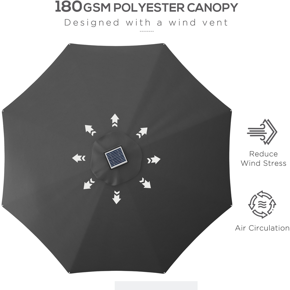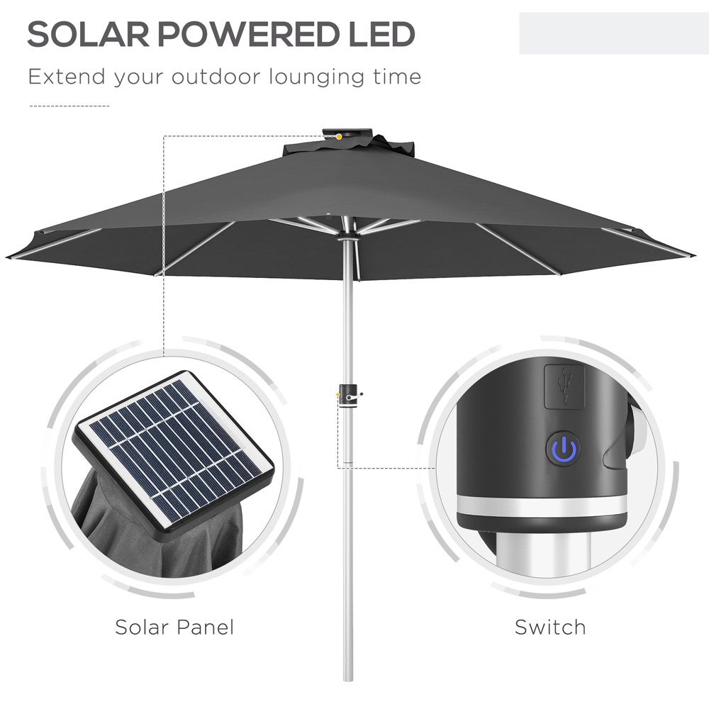Outsunny Charcoal Grey Solar LED Parasol 3m
