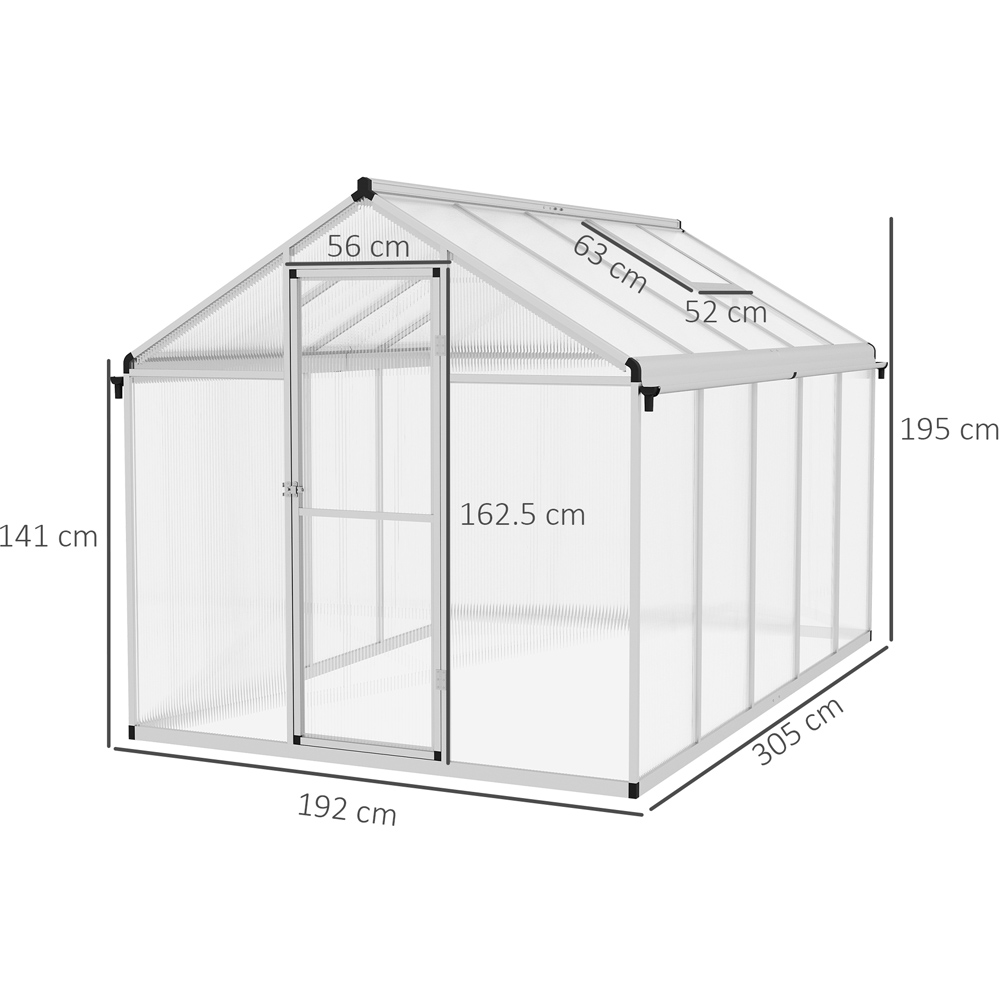 Outsunny Clear Polycarbonate 6 x 10ft Walk In Greenhouse