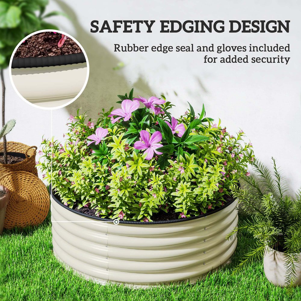 Outsunny Cream White Galvanised Planter with Gloves 120 x 120 x 43cm