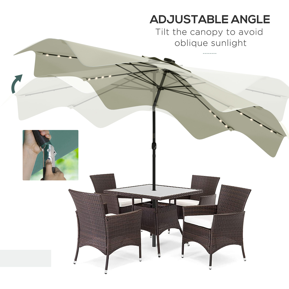 Outsunny Cream White LED Crank and Tilt Parasol 3m
