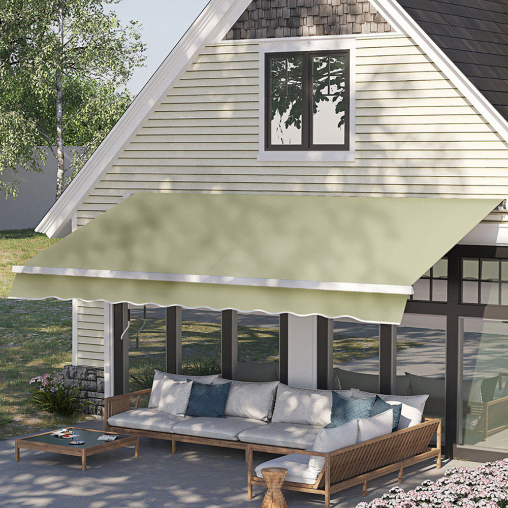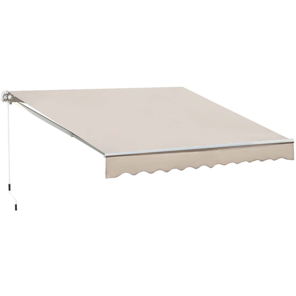 Add comfort to your outdoors with this Outsunny Cream and White Retractable Awning. With a thick sun-shielding canopy fixed on an aluminium frame, this awning will provide all the shade you need this Summer season. The manual design means you can set it up wherever needed - whether it's above a door or window. Featuring adjustable protection, you can adjust the angle horizontally between 5° to 45° and the width to meet your sun or shade needs. Made of 280g/m2 polyester with PU water-resistant coating it keeps you protected from harsh sunlight and damaging UV rays. Easy to use, the awning effortlessly mounts on your chosen surface. Also, it comes with all accessories included in the package to add convenience. Plus, it is finished with a crank handle for a smooth and quiet operation. Size: 3 x 2.5m.