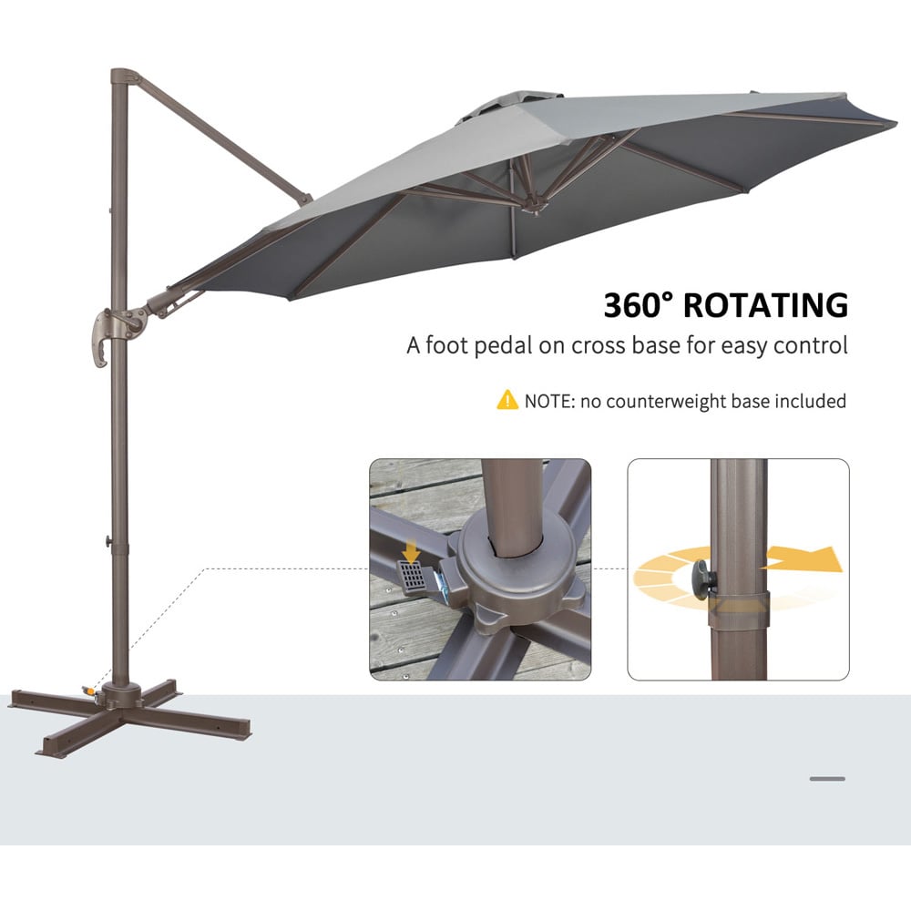 Crafted to enhance your outdoor enjoyment, this Outsunny dark grey cantilever parasol provides a practical shading solution for your garden or patio. Boasting a generous 3 x 2.5m canopy, this parasol offers ample shade from the sun's rays.