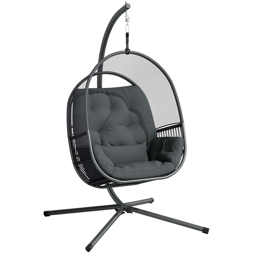 Introduce a gentle sway and a touch of elegance to your favourite spot with the Outsunny Hanging Chair. Designed for ultimate relaxation, this swing chair features breathable mesh fabric and comes complete with plush cushions and a removable lumbar pillow, offering tailored support for your body. Built to last, its sturdy powder-coated steel frame and balanced "X" shaped legs provide a reassuringly stable rocking motion. The perfect way to enhance your garden, patio or even an indoor space, creating your own personal haven of tranquility.