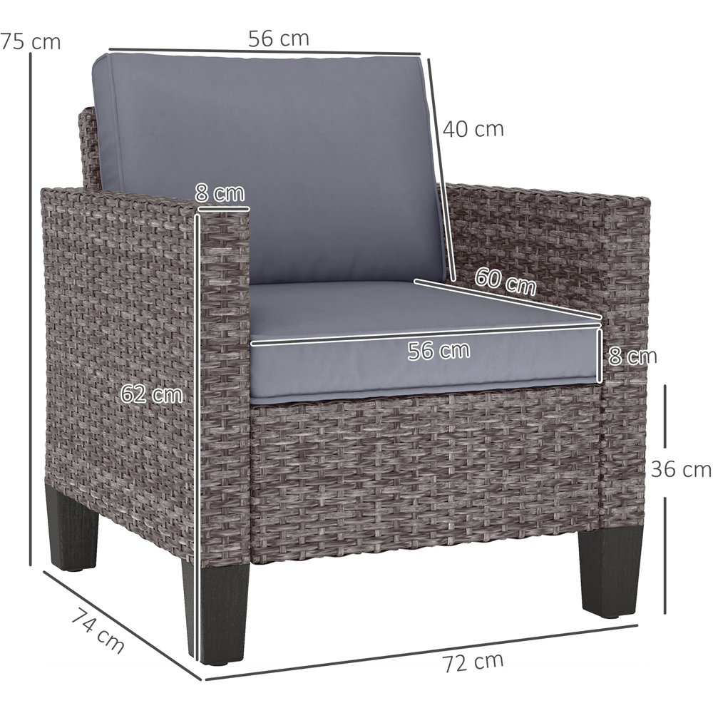 Outsunny Dark Grey Rattan Garden Armchair with Cushions