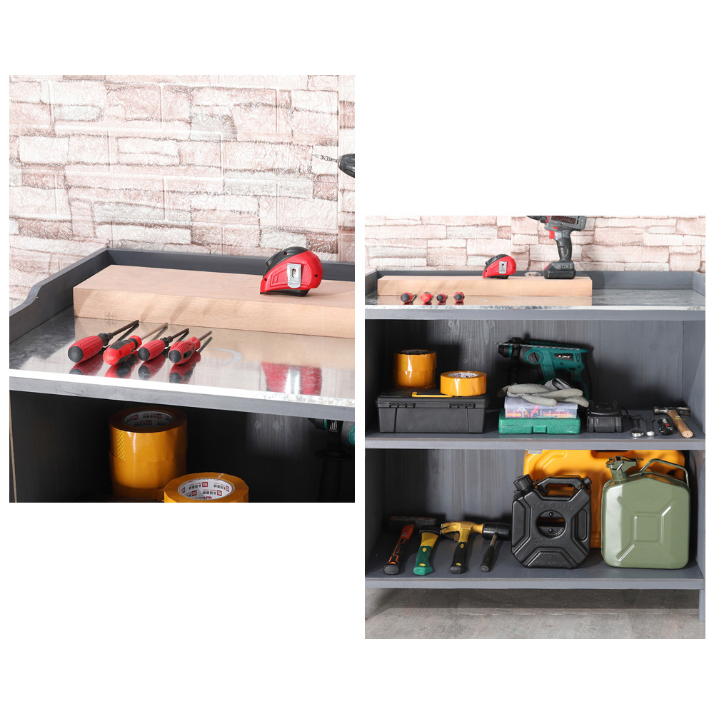 Organise your gardening tools with the Outsunny Garden Storage Cabinet. Boasting a robust, rust-resistant design and a spacious interior, this cabinet is perfect for storing all your essentials. The included galvanised metal worktop transforms this unit into a practical potting bench or tool cabinet, offering a sturdy and easy-to-clean workspace. Its freestanding design allows for flexible placement anywhere in your garden.