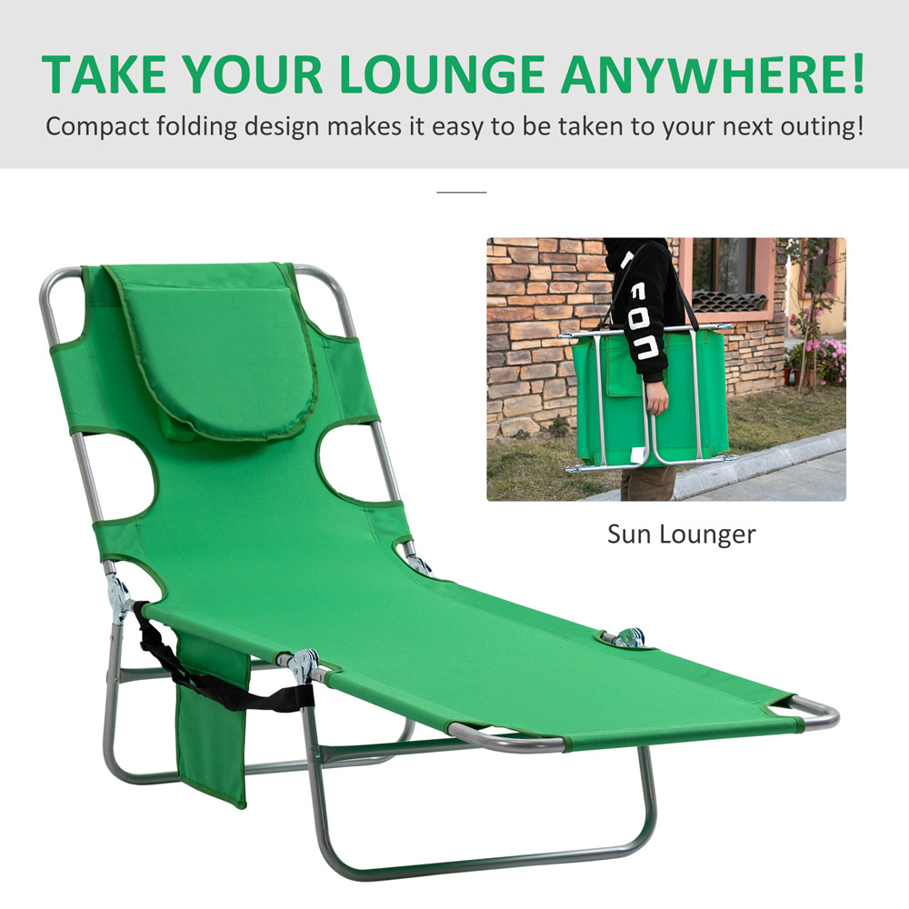 Outsunny Green 5 Level Adjustable Folding Sun Lounger with Reading Hole
