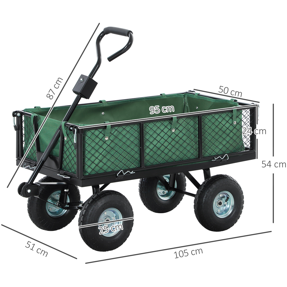 Outsunny Green Garden Cart with Removable Liner and Quick Release Sides 114L