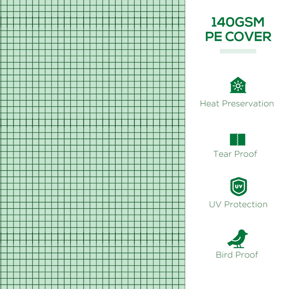 Cultivate your own produce effortlessly with the Outsunny PE Mini Tunnel Greenhouse. Its compact design is perfect for even the smallest of spaces, ideal for urban gardens or balconies. The robust steel frame provides a strong foundation, complemented by a reinforced plastic cover offering reliable protection from the elements. Five strategically placed windows – three at the top and two mesh side windows – ensure optimal ventilation and help keep pests at bay. Measuring 1.4 x 2.6 x 9.8ft, this greenhouse offers a practical solution for growing your own vegetables and plants, wherever you may be.
