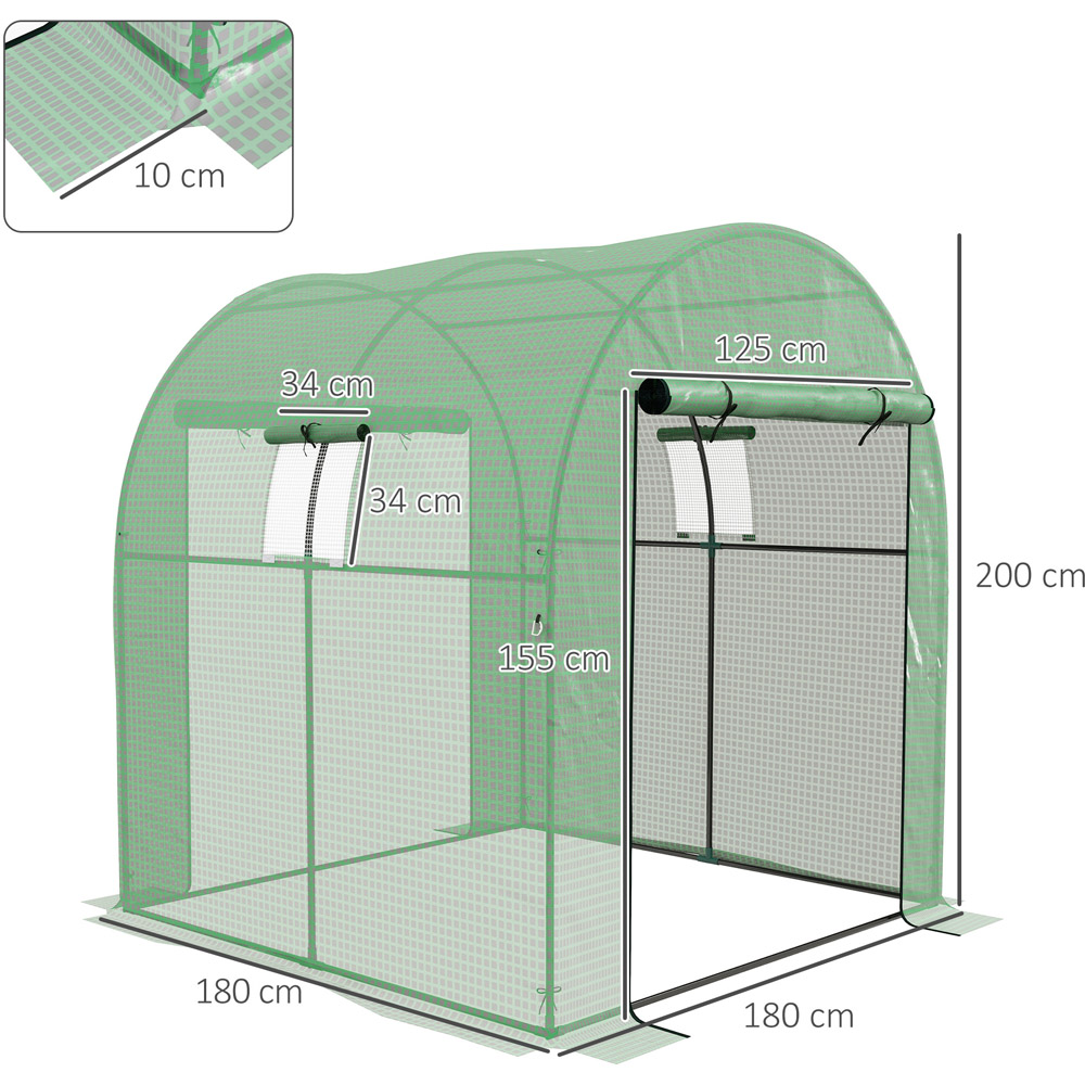 Extend your growing season with the Outsunny Green PE Polytunnel Greenhouse. Attractive, durable and designed for ease of use, this polytunnel is perfect for the home gardener. Its UV-resistant PE cover, complete with roll-up doors and mesh windows, creates the ideal environment for healthy plant growth. A reinforced grid within the cover prevents tearing and extends its lifespan, while still allowing 85% of sunlight to reach your plants. Enjoy home-grown tomatoes, salads, onions and more, all year round. This 6.5ft x 6ft x 6ft greenhouse offers a simple solution for year-round gardening.