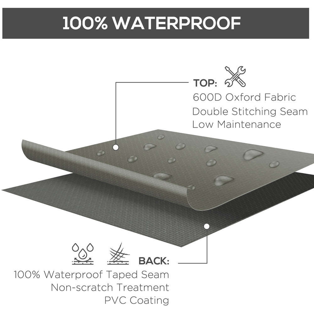 Ensure your outdoor furniture stays protected all year round with the Outsunny Grey 600D Oxford Square Rattan Furniture Cover, sized at 230 x 230 x 70cm. This generously sized cover, crafted from high-quality cloth with a full plastic coating, offers robust defence against severe weather, dirt, and potential damage. It's designed for durability and longevity. The adjustable toggle and drawstring fastening ensures a snug and secure fit, keeping the cover firmly in place, even when the wind picks up. Invest in this furniture cover and keep your outdoor furniture looking its best for years to come.