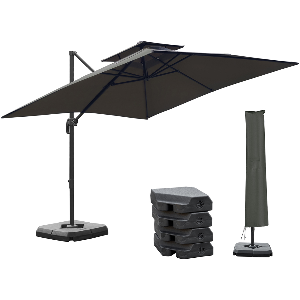 Outsunny Grey Crank and Tilt Cantilever Parasol with Base 3m