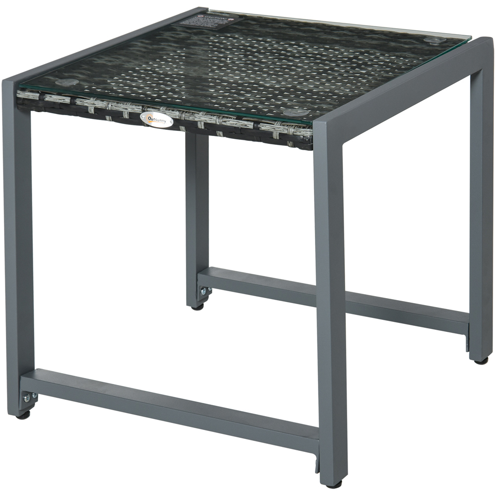 Enjoy your coffee outdoors with Outsunny’s Grey Rattan End Side Table. This patio table is perfect for dining and relaxing outdoors. Made from PE wicker in a soft grey tone, it is weather-resistant and low maintenance, with an aluminium frame underneath for extra strength and stability. Sitting on the top, the large and sleek tempered glass panel provides plenty of room for keeping drinks, food and more. It is finished with adjustable foot pads to stabilise the table and goes perfectly with our matching chairs (codes 860-044 and 860-045). Protect your garden furniture with our durable and waterproof covers. Explore our wide range of heavy-duty Garden Furniture covers to find the perfect fit for your needs.