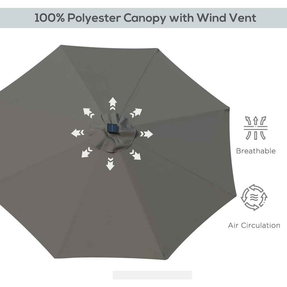 Outsunny Grey Solar LED Crank and Tilt Garden Parasol 2.7m