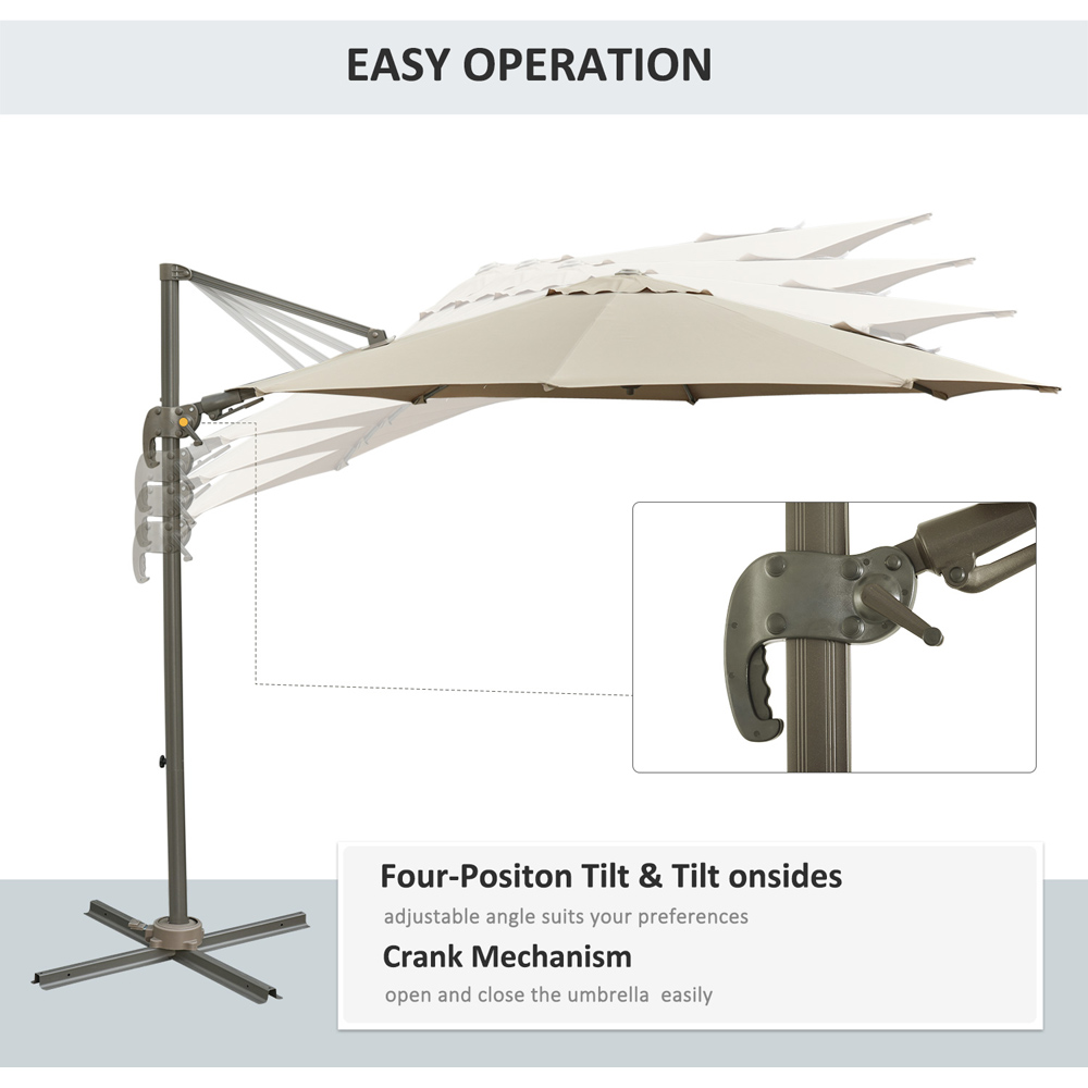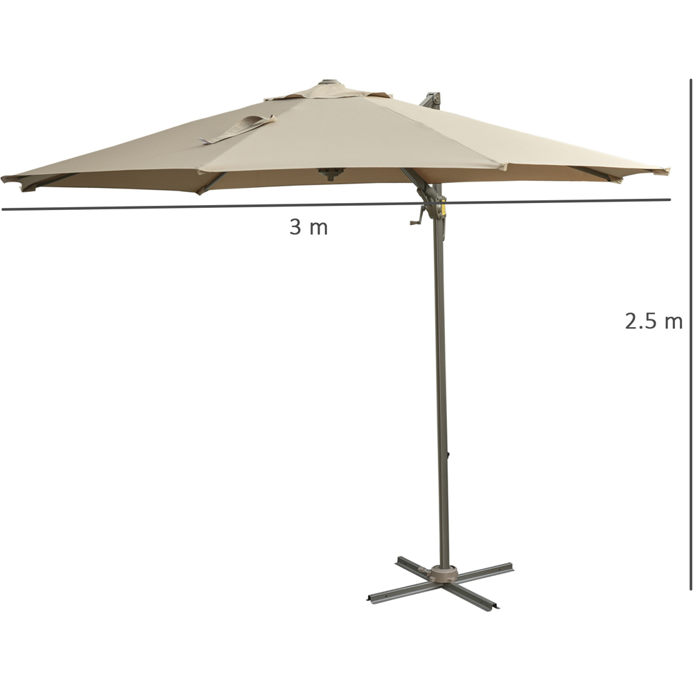 Outsunny Khaki Crank and Tilt Cantilever Roma Parasol with Base 3 x 2.5m