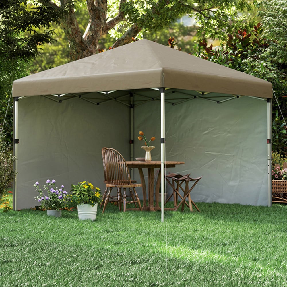 Outsunny Khaki Pop Up Gazebo with 2 Sides and 4 Weight Bag 3 x 3m
