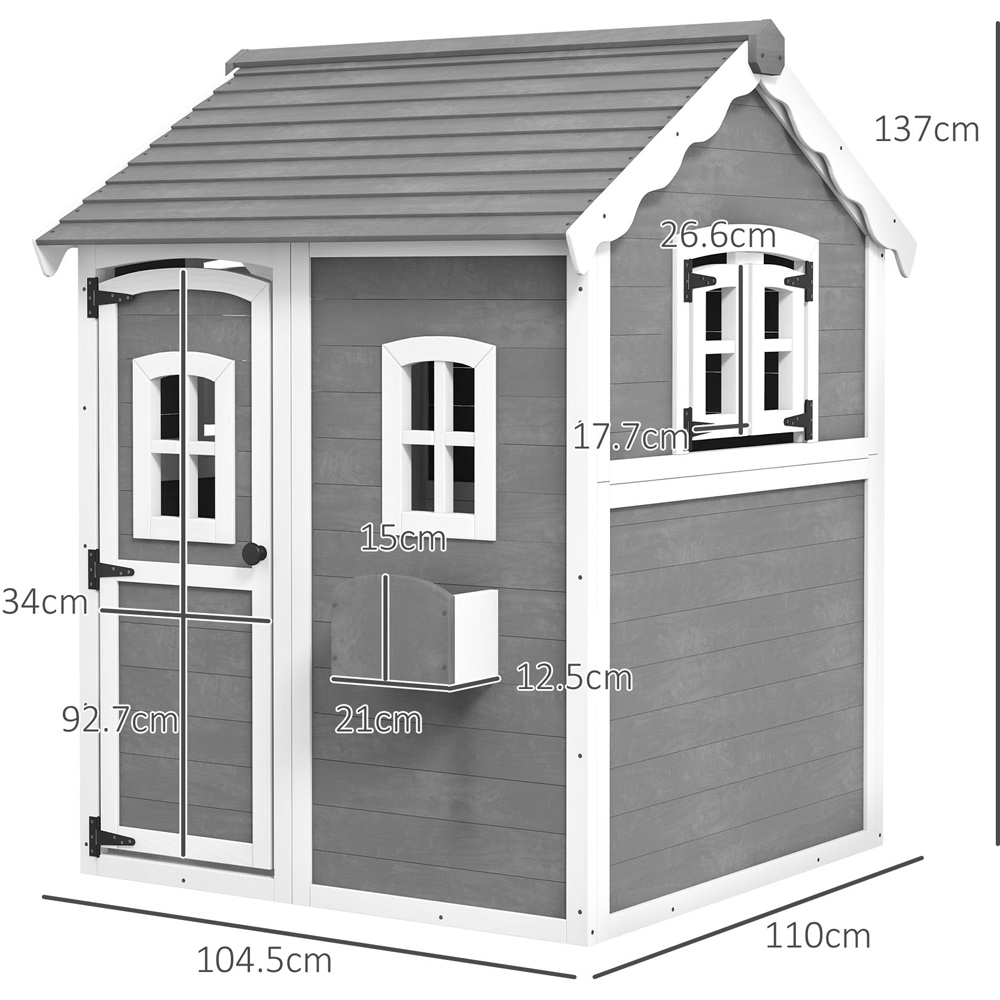 Create a magical outdoor retreat for children with the Outsunny Kids Wooden Playhouse 3.4 x 3.6ft. Crafted from natural fir wood, it is built to last and features inside flooring that keeps them safe and comfortable. The house comes with a left front door, six windows and a plant box, offering endless opportunities for play. The door and windows ensure easy access and keep the interior cool and ventilated. With this playhouse, there is no shortage of fun activities to explore.