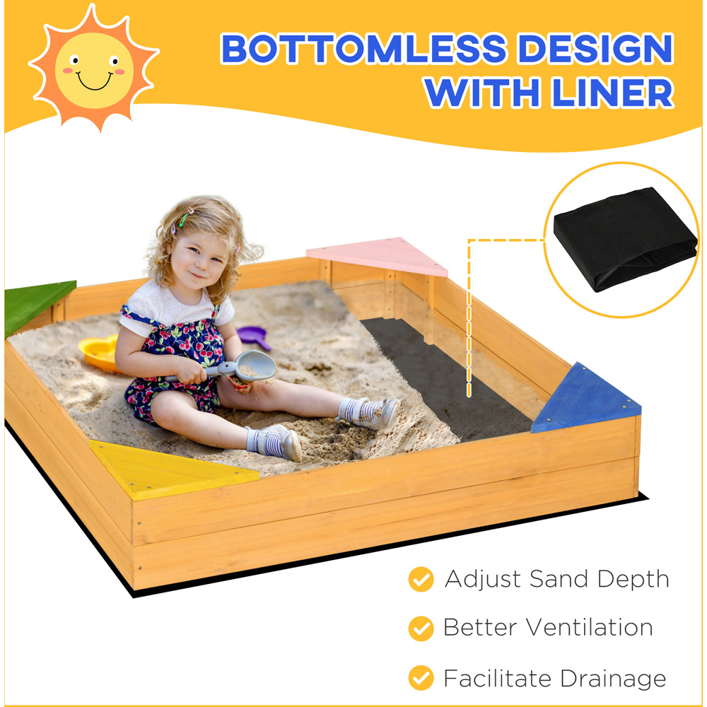 Create your very own mini beach with this Outsunny Kids Wooden Sandbox with Seats. This sandbox has four colourful seats on each corner so children can have fun with friends - perfect for parties and playdates. Made using fir wood, it has a specially treated surface that makes this durable piece suitable for outdoors. Featuring a bottomless design and removable fabric, it ensures sand doesn't get everywhere, keeping your space clean.