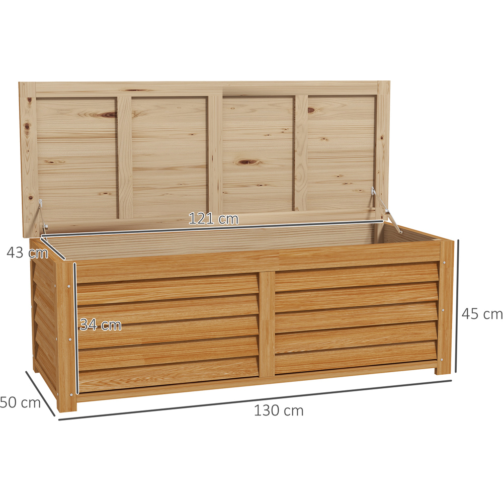 Organise your outdoor area with this spacious Outsunny storage box. Crafted from durable fir wood with a protective finish, it offers ample storage at 292 litres. Ideal for tools, cushions and other garden essentials, this stylish and robust box keeps your items safe and your space tidy.