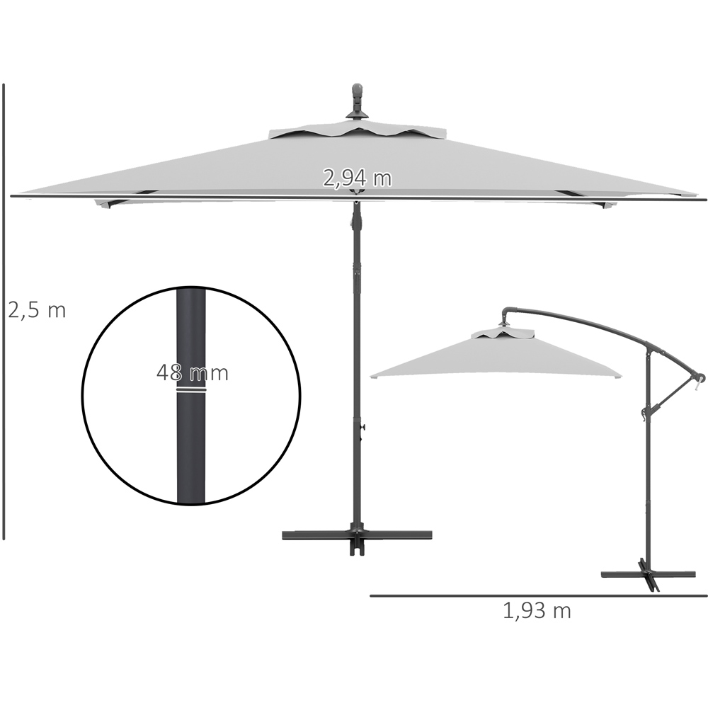 Outsunny Light Grey Crank and Tilt Cantilever Parasol with Cross Base 3m
