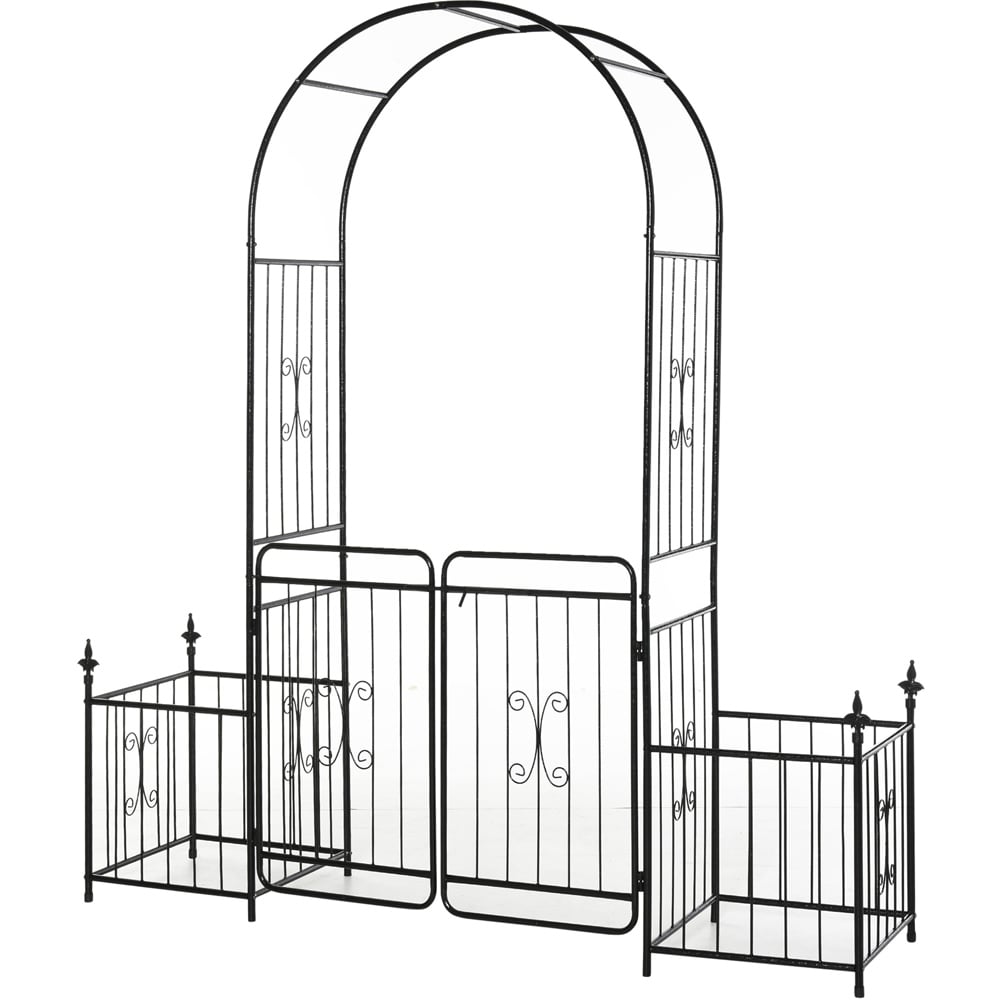 Outsunny Metal Garden Arbour Arch Gate with 2 Side Planter Boxes and Vine Frame