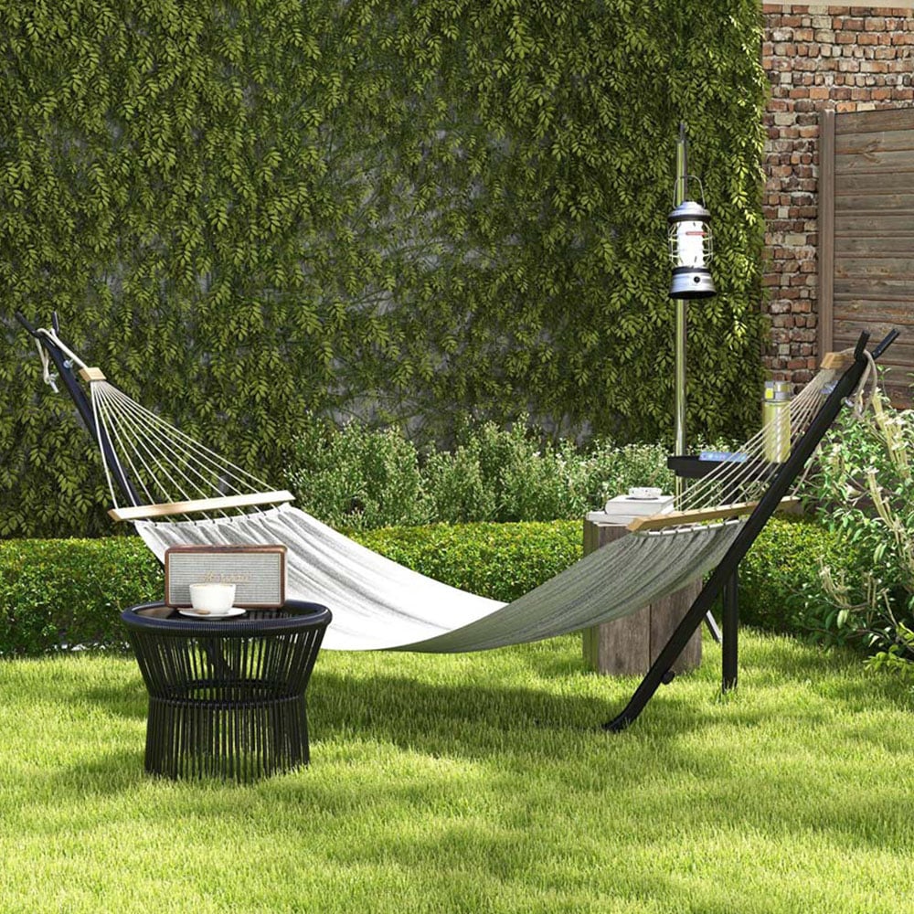 Create a relaxing retreat in any location with this Outsunny Hammock Stand and Side Tray. Forget needing trees – this stand, crafted from weather-resistant, powder-coated steel tubing, brings a touch of style to any outdoor setting. Designed for hammocks up to 280 cm in length, it offers a dedicated space to unwind. For added practicality, the included side tray provides a convenient spot for drinks, accessories, and other essentials, ensuring everything you need is within easy reach.